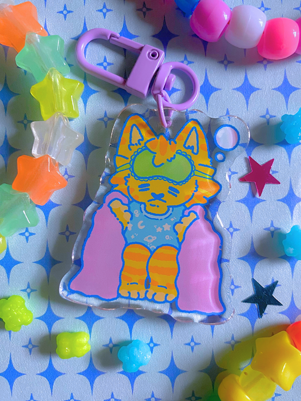This keychain is made of double sided epoxy resin and is approximately 2x2 inches!